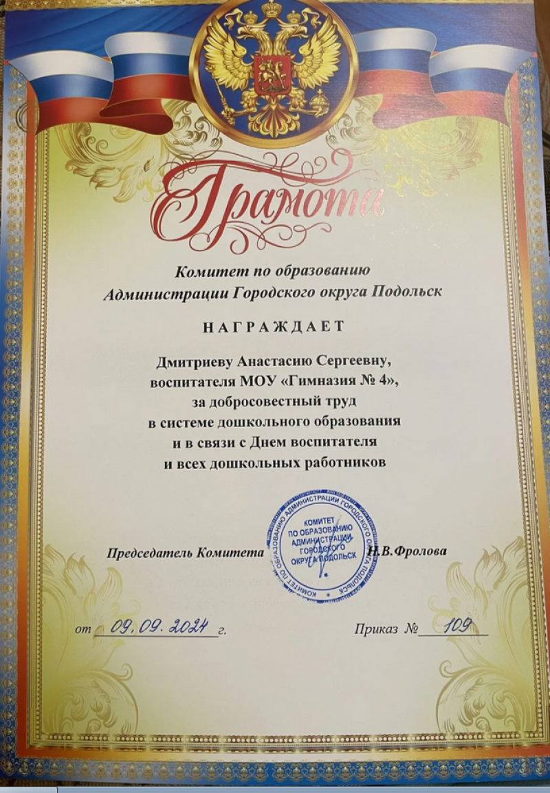 Сайт воспитателя Дмитриевой Анастасии Сергеевны